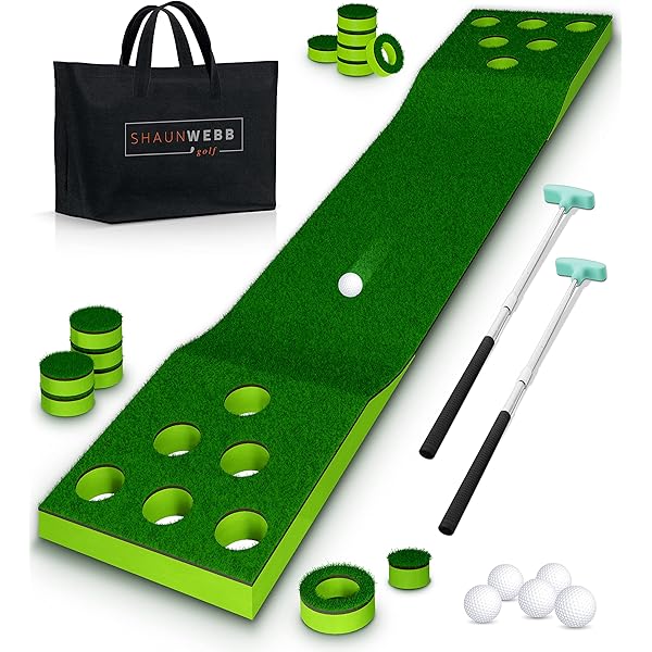 Amazon Com Shaun Webb Golf Putting Green Indoor Mat Have Fun And Impress Your Friends Play Anywhrere With This Putting Pong Game Basement Backyard Tailgate Beach Office Mini Golf 1 6 X 9 8